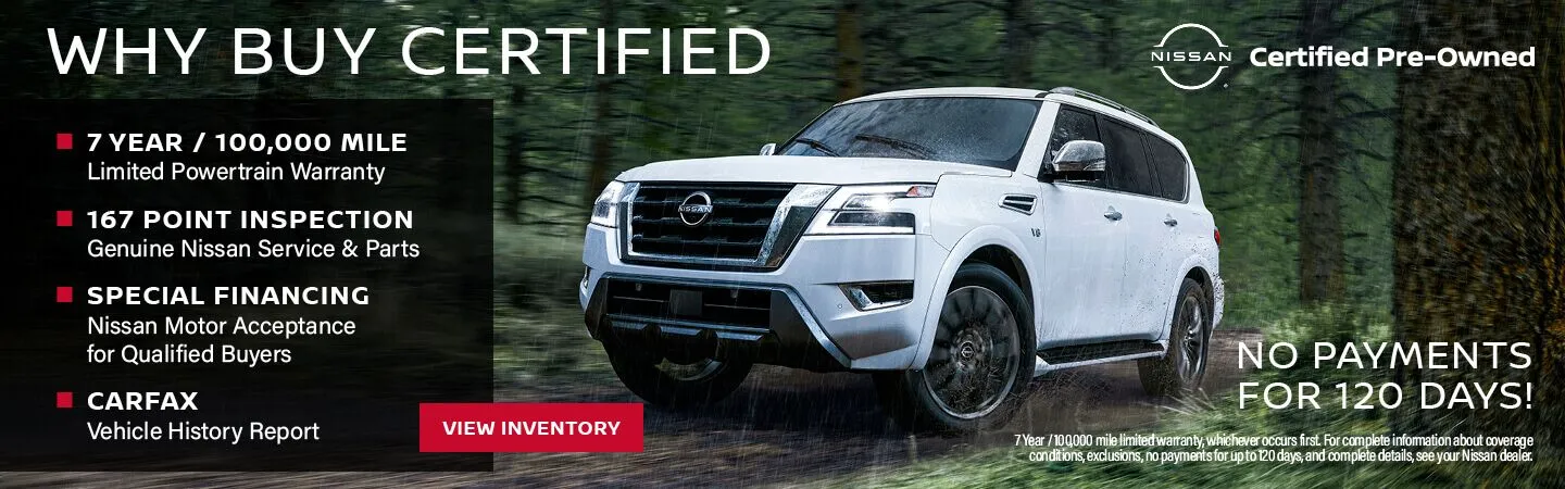 When you choose a Nissan Certified Pre-Owned vehicle at Oak Ridge Nissan, you’re getting exceptional quality backed by Nissan. Every CPO Nissan includes: